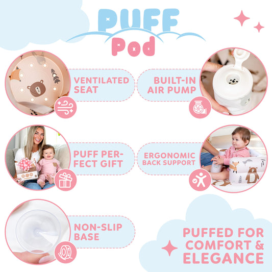 Inflatable Baby Chair with Safety Harness, Built-In Pump & Non-Slip Base, Infant Sit Up Seat for 3-36 Months, Portable Travel Seat, Easy to Clean
