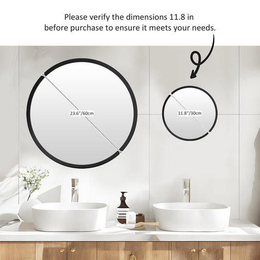 12 in (30 cm) Round Wall Mirror, Matte Black Metal Frame Circle Vanity Mirror, HD 4mm Anti-Distortion Glass, Mounting Hardware Included, Multi-Room Decor