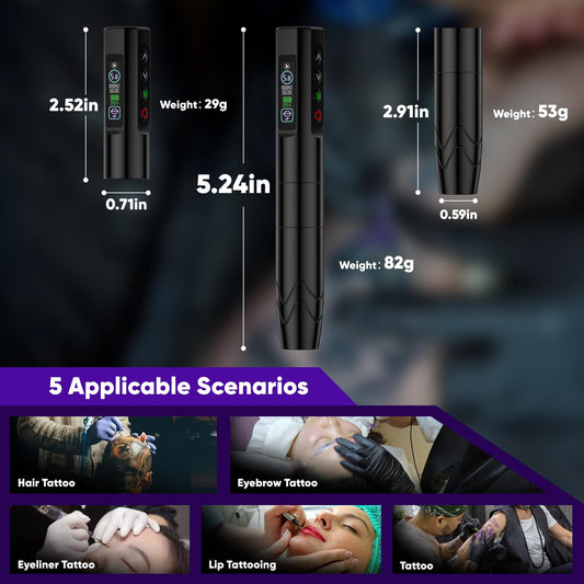 Wireless Tattoo Pen Kit with Large IPS Screen, 1800mAh Battery, 4-12V Adjustable, 20 Cartridges, Practice Inks & Accessories
