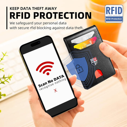Men's Slim Bifold Leather Wallet with RFID Blocking, 12 Card Slots & Money Clip - Ideal Gift for Special Occasions