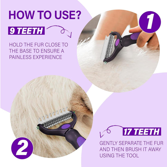 Purple Professional Pet Grooming Brush for Long-Haired Dogs & Cats, Double-Sided Stainless Steel