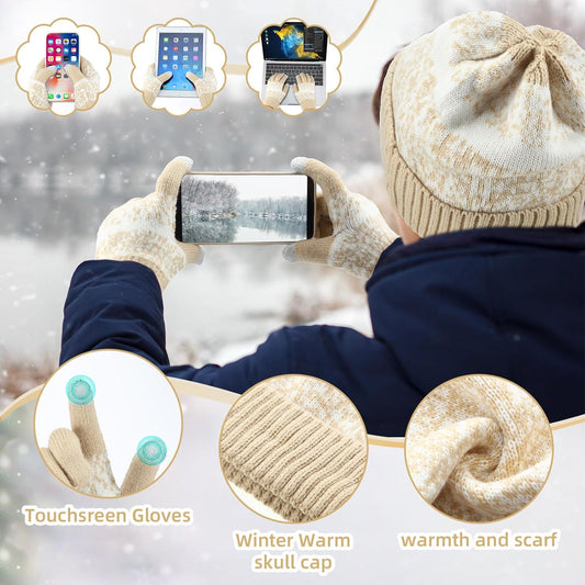 Warm Winter Accessories Set: Fleece-Lined Hats, Touchscreen Gloves & Scarves for All
