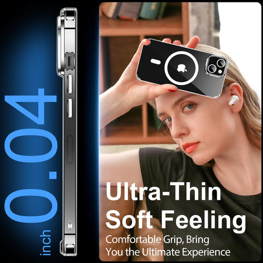 Magnetic iPhone 15 Clear Case with Magsafe, Dual Screen Protectors, Anti-Yellow & Military-Grade Drop Protection, 6.1 inch