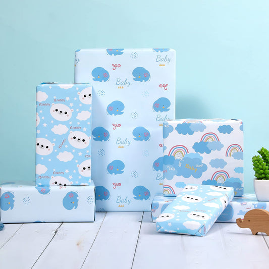 Baby Shower Wrapping Paper, Precut 12 Sheets - Cute Designs for Boys & Girls, Noticeable Typo on One Sheet, Eco-Friendly, 20" x 29" (50.8cm x 73.7cm)