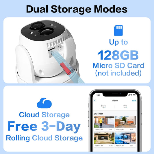 Wireless Outdoor Security Camera - 2K, Pan-Tilt 360°, Battery Powered, 2-Way Talk, 3MP PTZ, WiFi, Cloud/SD Storage, Color Night Vision, Spotlight, Siren, IP65 Waterproof, Smart AI Detection, Device Sharing