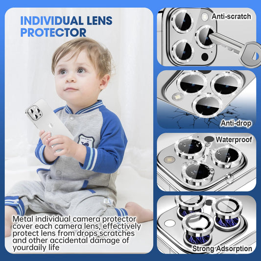 Stylish Silver Glitter Camera Lens Protector for iPhone 15 Pro/15 Pro Max: Scratchproof, Case-Friendly Accessory Enhancing Camera Quality with AR Technology