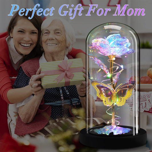 7.9" Decorative Glass Covered Light-Up Eternal Glass Rose w/ Gold Foil Butterfly