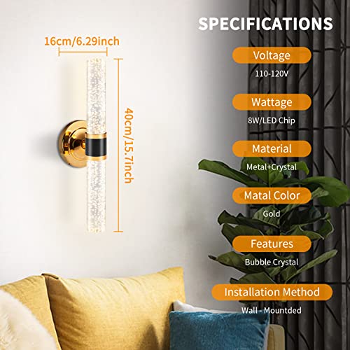 2pk 15.7" Gold Indoor LED Crystal Bubble Column Wall Sconces