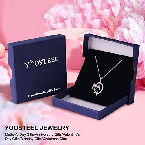 CZ Silver/Rose Gold Love Heart Rose Letter R Pendant Necklace