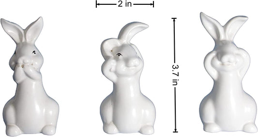 3pcs 2"x3.7" White "Three Wise Monkeys" Themed Resin Easter Bunny Figurines Set