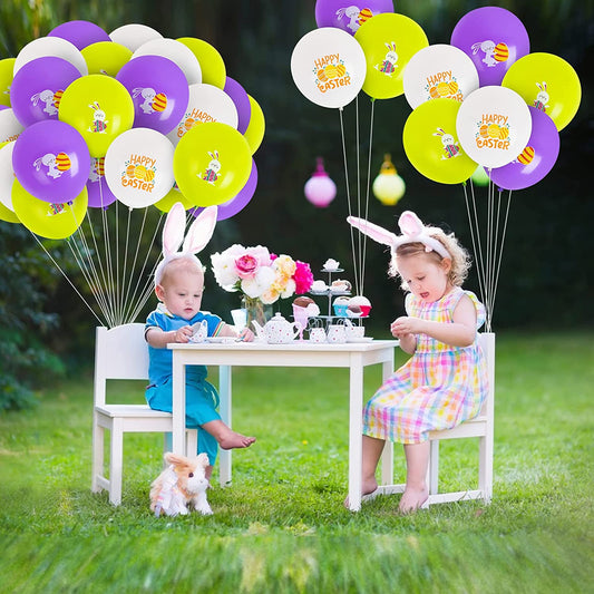 30pcs 12" Happy Easter Latex Balloons (10 Purple/10 Green/10 White)