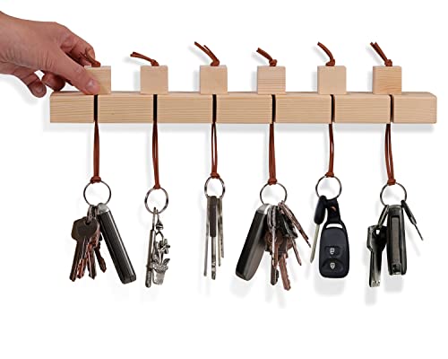 seashpea Wood Key Holder Wall-Mounted - Key Hanger with 6 Unfinished Wood Blocks, Key Holder for Wall Decorative, Pine Wood Key Rack for Entryway, DIY Home Decor, Office