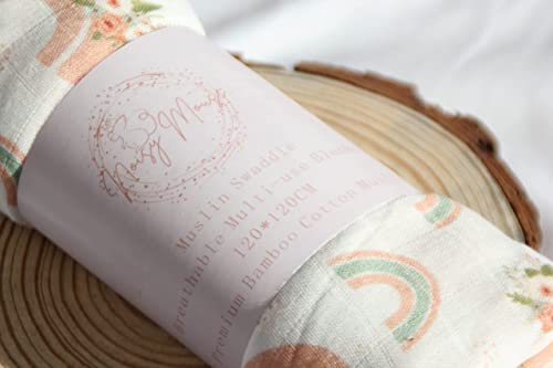 Noisy Mouse 47" x 47" Muslin Swaddle Blanket. 70% Bamboo, 30% Cotton. Rainbow/Flower Pattern. Boho Style…