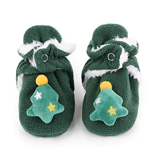 Unifizz Newborn Baby Boys Girls Booties Stay On Socks Non Skid Soft Sole Infant Toddler Warm Winter House Slipper Crib Shoes for Boys Girls (Green Christmas Tree, Size 6-12 Months Infant)