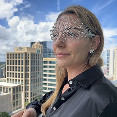 Sparkle with the Sun Goddess Headpiece – Silver Eye Veil with Rhinestones, One Size Fits All