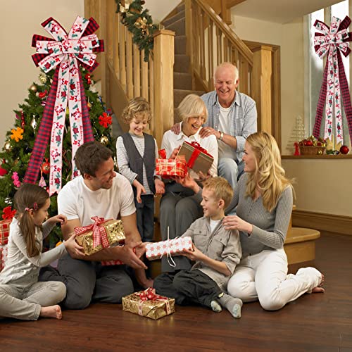 Christmas Tree Topper Bow, 29 Inch Long Ribbon Rustic Tree Topper, Red Beige Large Buffalo Plaid Xmas Bow Tree Topper with Streamer Wired Edge for Christmas Decoration, 37x13 Inch
