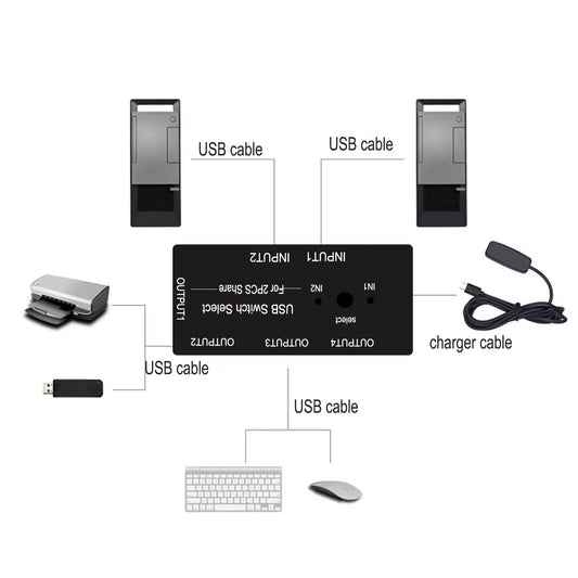 USB Switch 2 in 4 Out Selector for Sharing Devices between 2 Computers