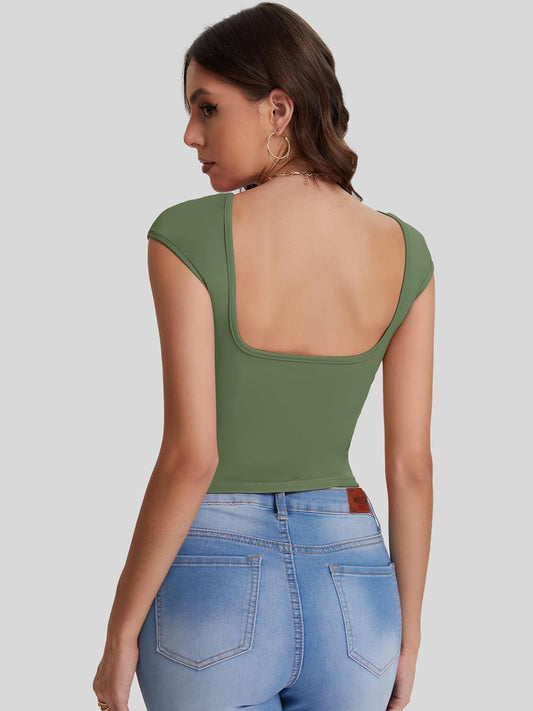 Women's Large Sexy Army Green Crop Top for Women - Backless & Stretch for Summer