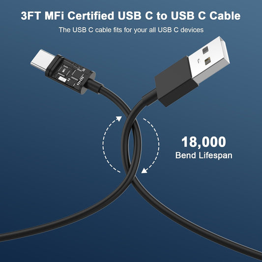 Dual Port 4.8A/24W iPhone 15 Car Charger - Quick Charge with 2 MFi Certified USB to USB-C Cables Compatible with New iPhone Series & iPads