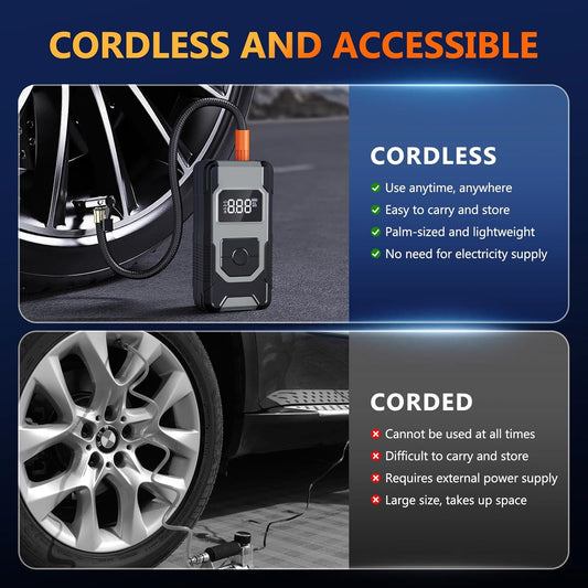 Portable Tire Inflator Air Compressor – 150PSI, Fast Inflation, LCD Display, Cordless Design