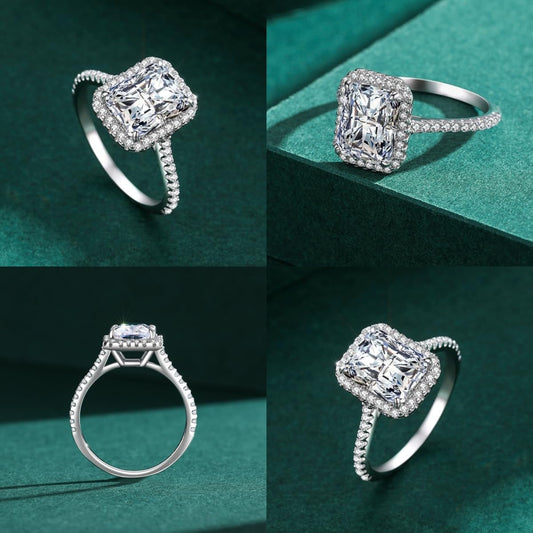 Size 7 S925 Silver Square High-Carbon Diamond Ring with Moissanite Accents