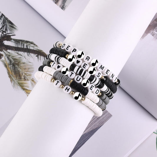 Handmade Friendship Stretch Bracelets, 6 Pieces, Inspired by Music - Perfect Gift for Women and Girls