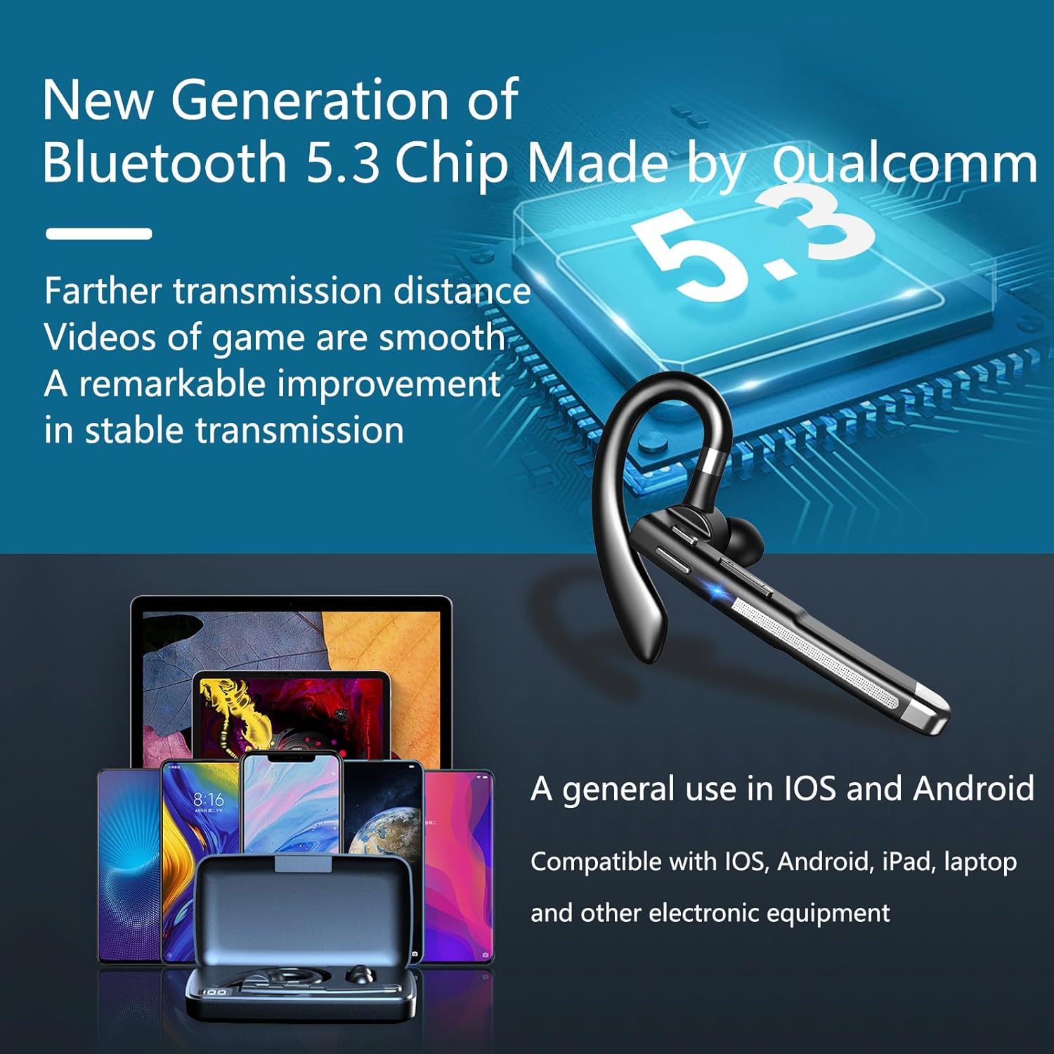 Experience crystal clear communication on the go with our Bluetooth Wireless Earpiece, featuring advanced Bluetooth 5.3 technology for seamless pairing and robust connectivity. This headset boasts an innovative ENC (Environmental Noise Cancellation) function that automatically minimizes background noise, ensuring your conversations remain uninterrupted and clear, no matter your surroundings.