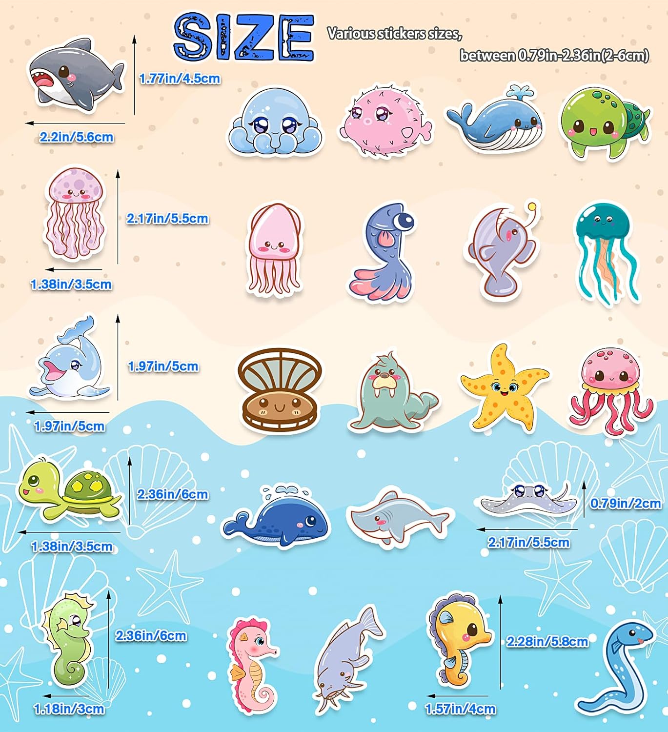 Our versatile sticker set caters to kids, teens, and adults alike, making them a delightful addition to holiday decorations for Christmas, Thanksgiving, Valentine's Day, or Halloween. Ideal for teachers, these stickers serve as an educational tool in classrooms, helping to teach children about marine life while also doubling as exciting rewards or gifts. Whether it's for a classroom, a birthday party favor, or a thoughtful gift, this collection of marine animal stickers promises to spark joy and creativity in all who receive them.
