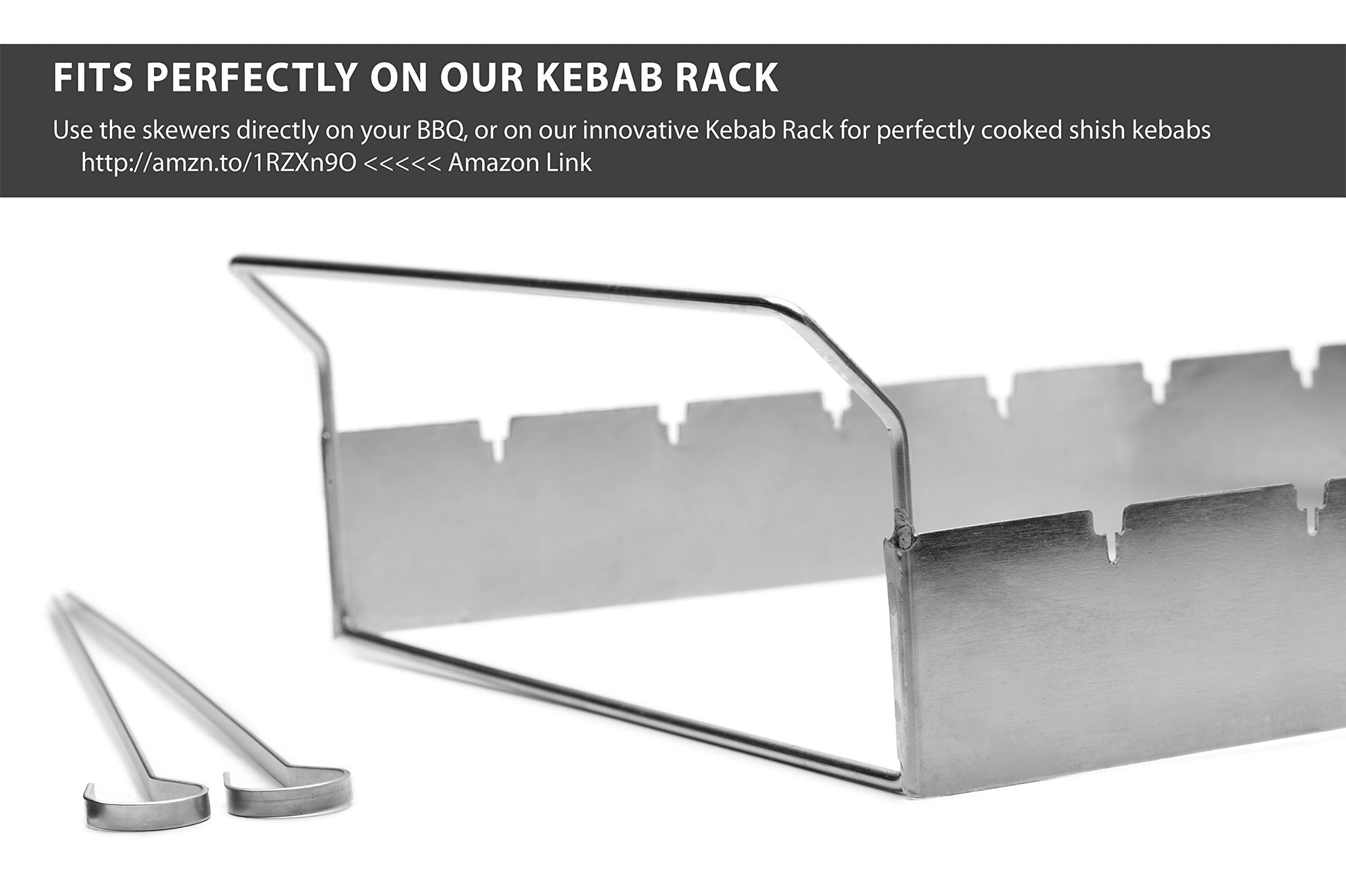 Not just for backyard BBQs, these versatile skewers can be used in open-air grilling environments. Imagine surrounding an open camping fire with bricks and laying the skewers over the heat, or utilize our innovative Kebab Rack for a more sophisticated approach. Their 3/8-inch width ensures stability, while the flat surface is ideal for large chunks of beef, pork, fish, or even delicate vegetables. Moreover, these all-metal handles resist the heat, unlike traditional wood options, promising a durable, burn-free experience.