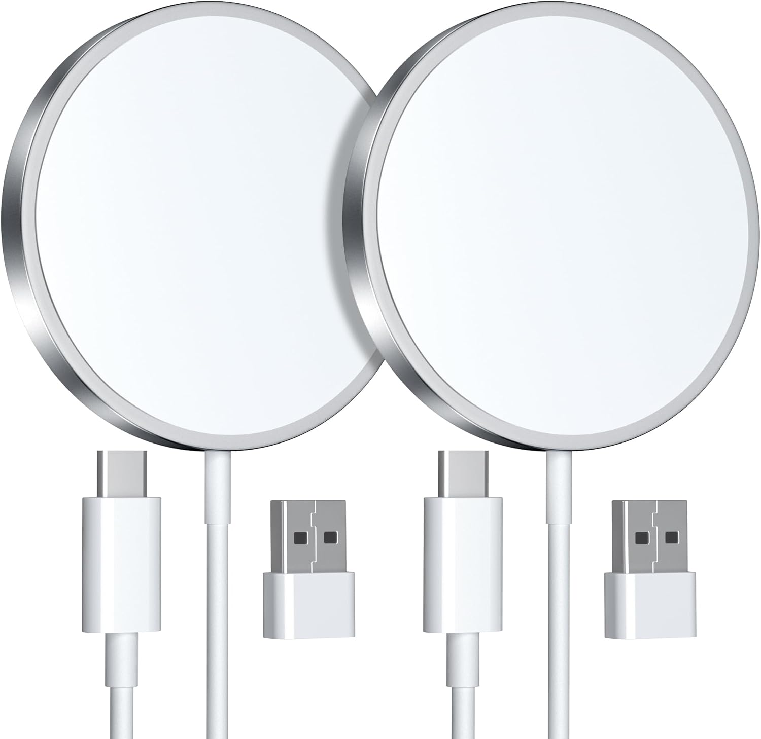 Power up with this 2-pack of 15W magnetic wireless chargers designed for effortless snap-on charging. Each pad uses a built-in 32-magnet ring for precise auto-alignment with compatible 16/15/14/13/12 series magnetic phones, helping maintain strong attachment and optimal charging efficiency. The slim, modern profile looks clean on a desk or nightstand, while advanced safeguards—temperature control and foreign object detection—support safe, reliable performance. Pair with magnetic clear cases or magnetic leather wallets for an even better attraction effect. A simple, cable-free way to keep daily devices topped off at home, in the office, or on the go.