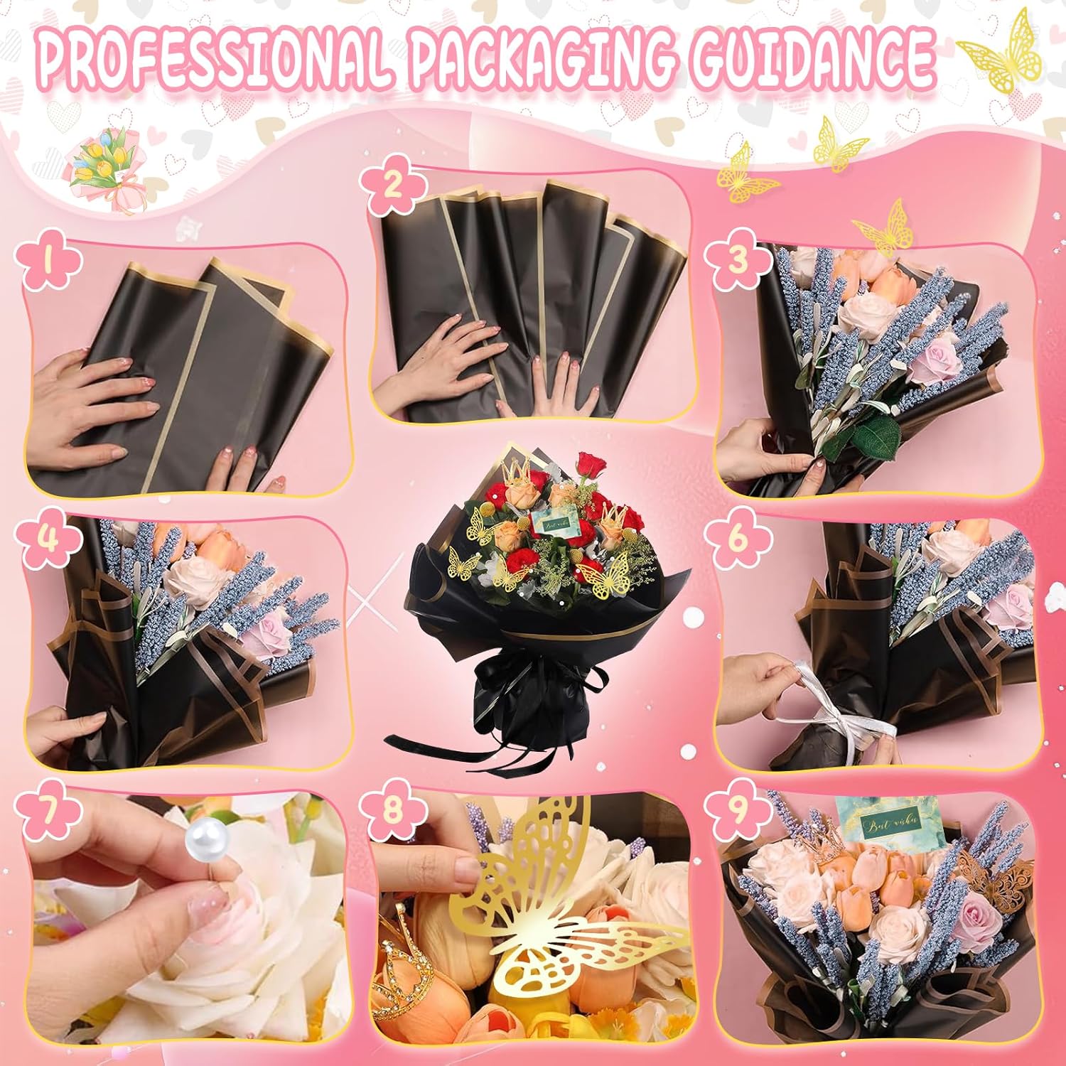 The waterproof quality of the wrapping paper ensures that your creations stay pristine, even in humid environments. This versatile kit is not only perfect for flower arrangements but also ideal for decorating cakes, crafting home décor items, and more. Whether it's for Valentine's Day, Mother's Day, a birthday, or graduation, this kit will help you create stunning, memorable gifts and displays that are sure to impress.