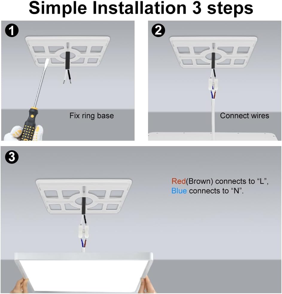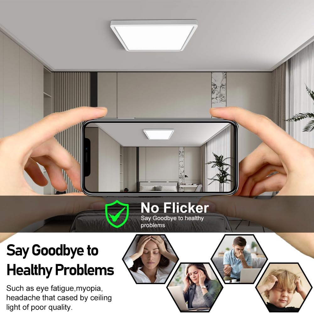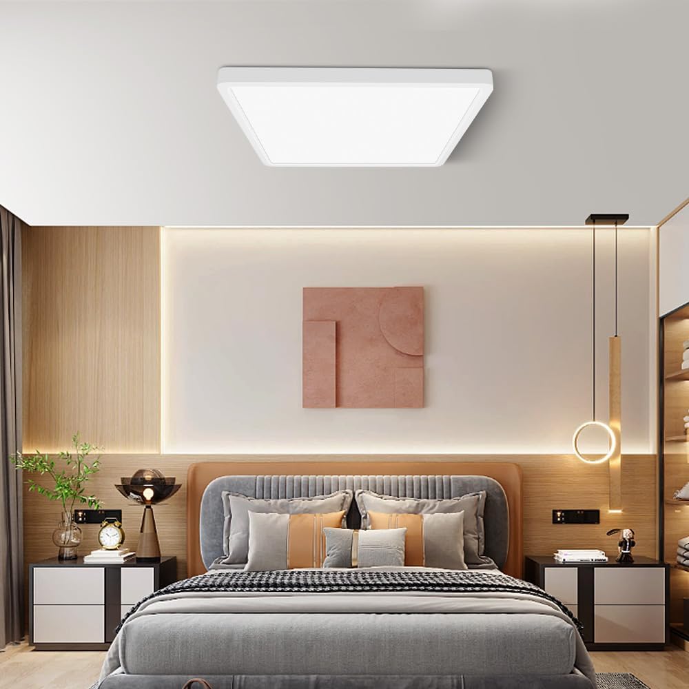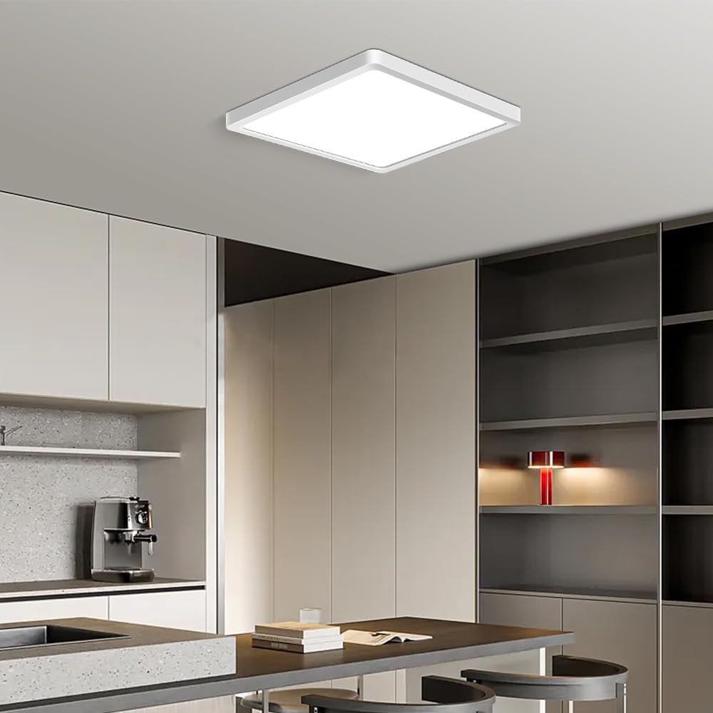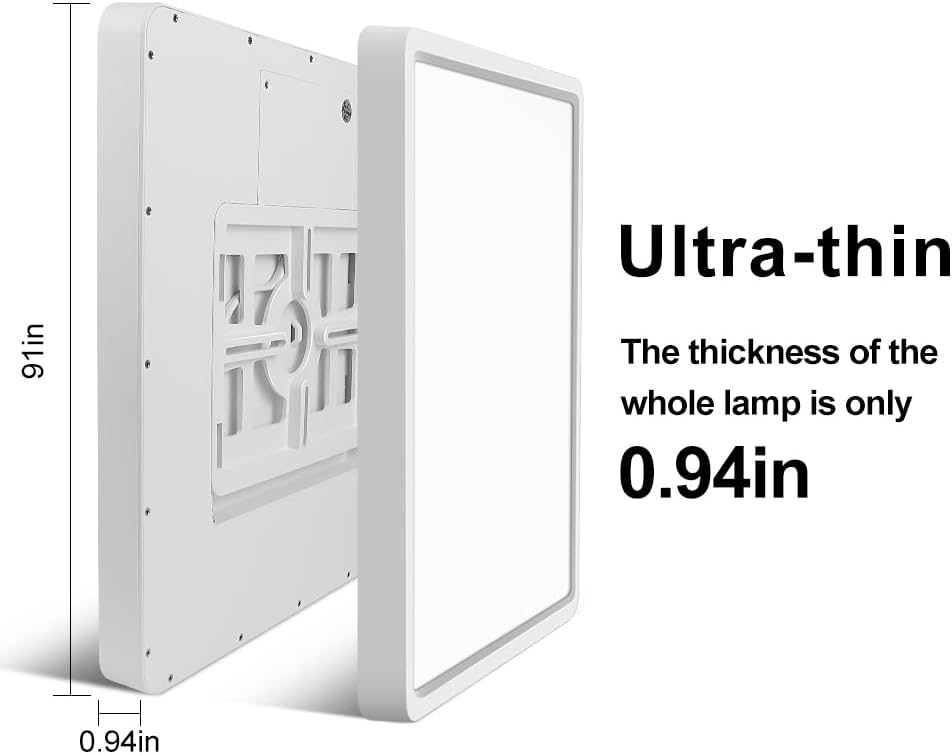 Crafted from high-quality, fire-resistant ABS material, the light features a slim, modern design with a mere thickness of 0.94 inches, ideal for rooms with low ceilings. Its square shape and seamless, flat design promote a gap-free installation, enhancing any room with its sleek, contemporary look. Installation is straightforward and quick, requiring only two simple steps: mounting the base to the ceiling and twisting the lamp into place. This non-dimmable unit is compatible with regular ON/OFF toggle switches.