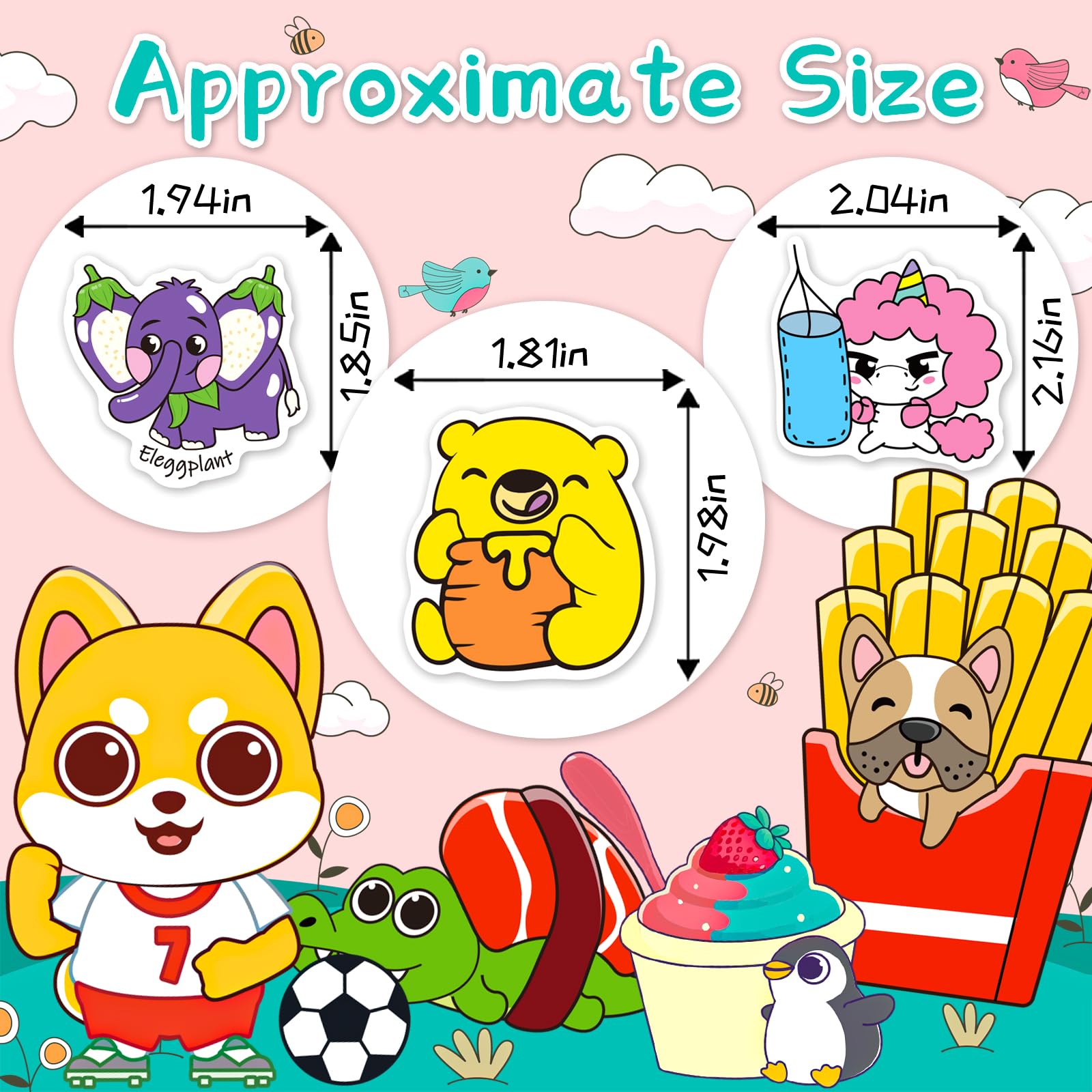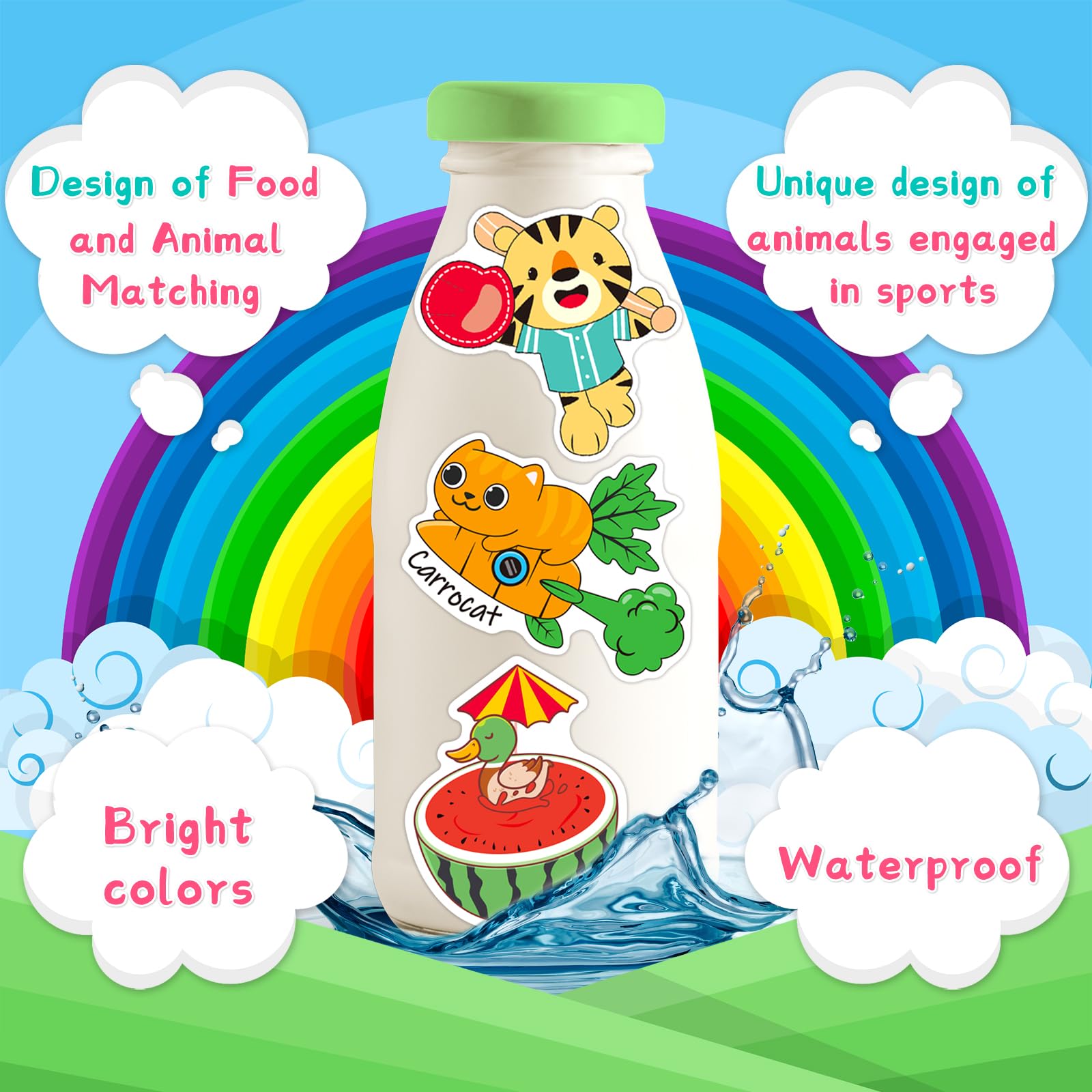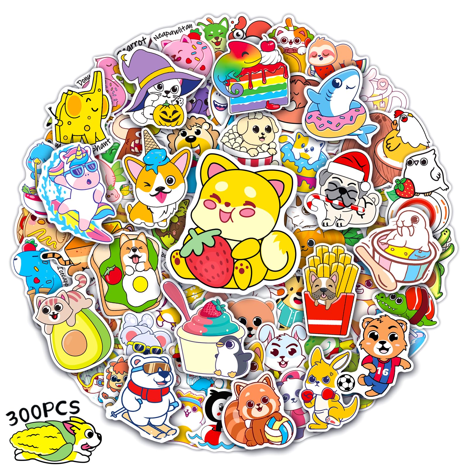 300 Pcs Cute Animal & Food Vinyl Stickers Pack for Water Bottles - Perfect for Kids, Teens & Students