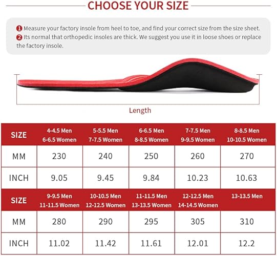 Men 11-11.5 / Women 13-13.5 Arch Support Insoles - Foot Pain Relief & Stability