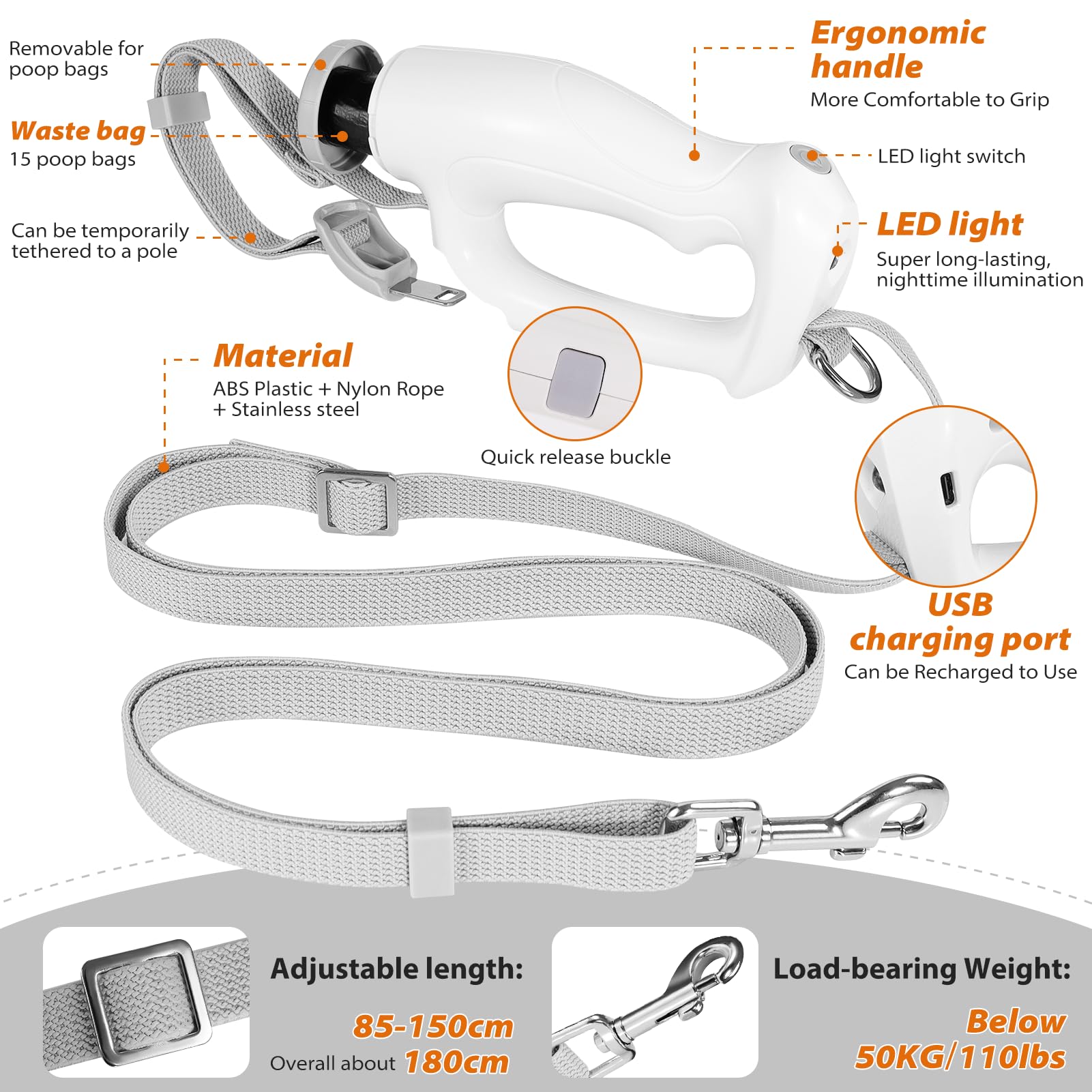 4-6 FT Extendable Dog Leash with LED Light & Poop Bag Holder for Dogs up to 110lbs
