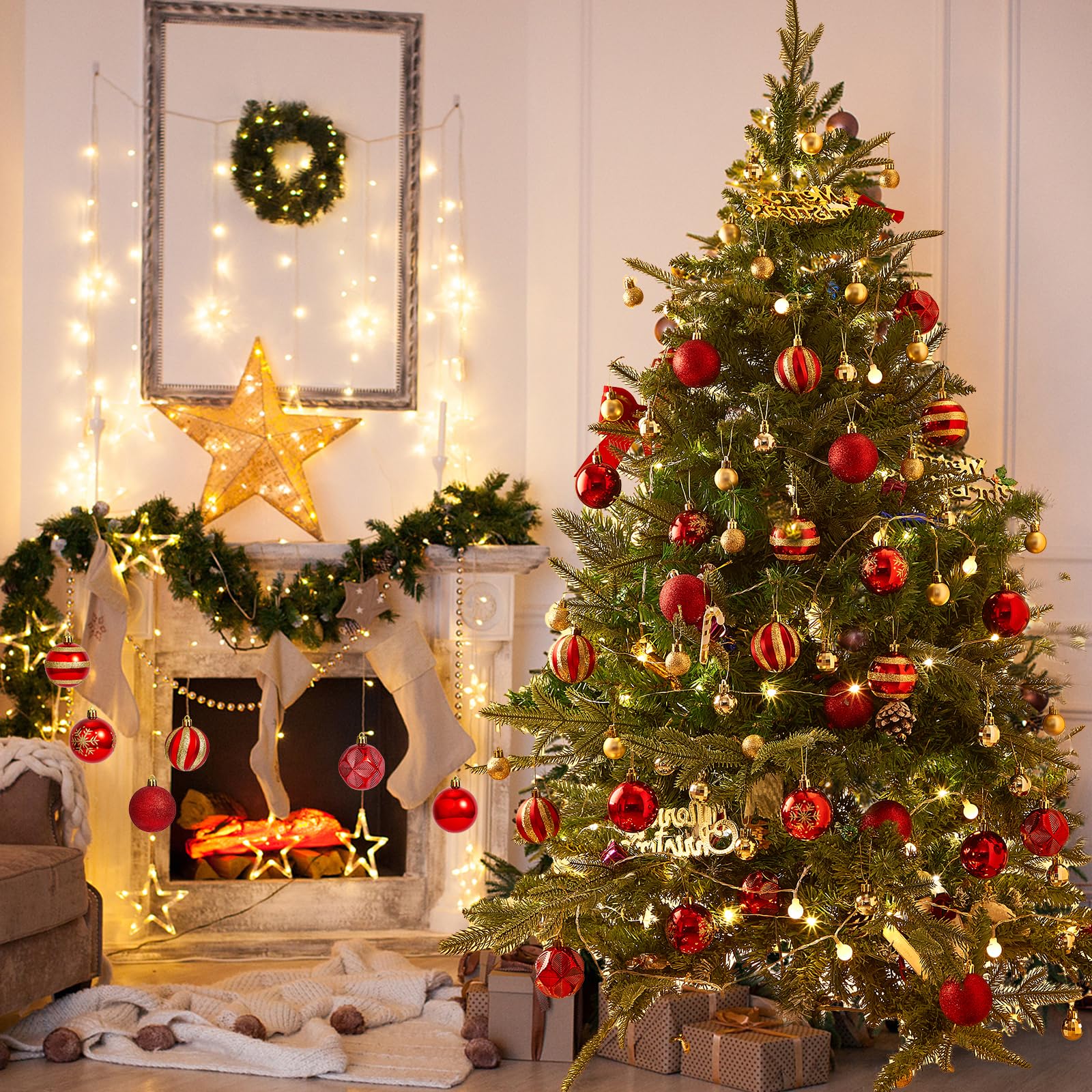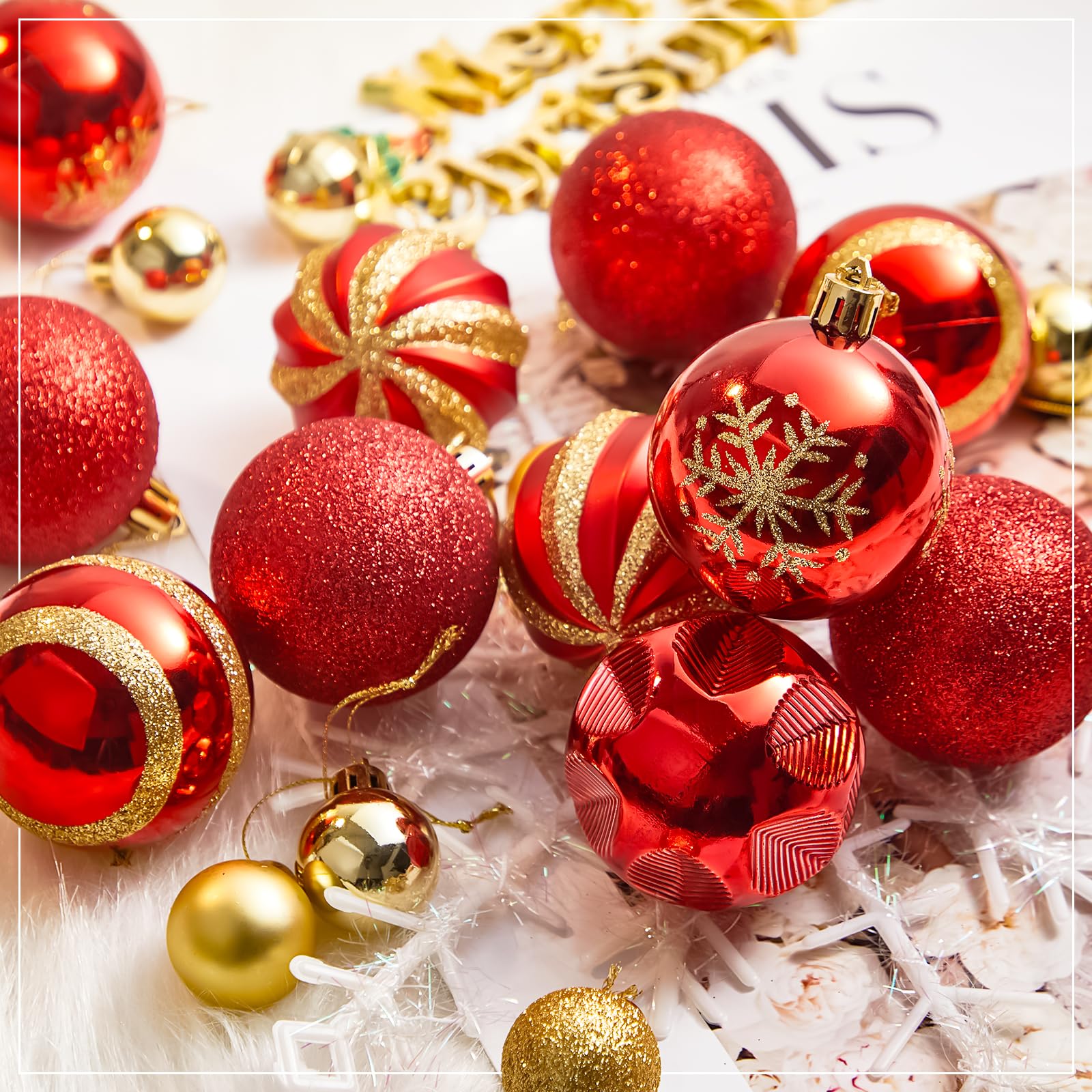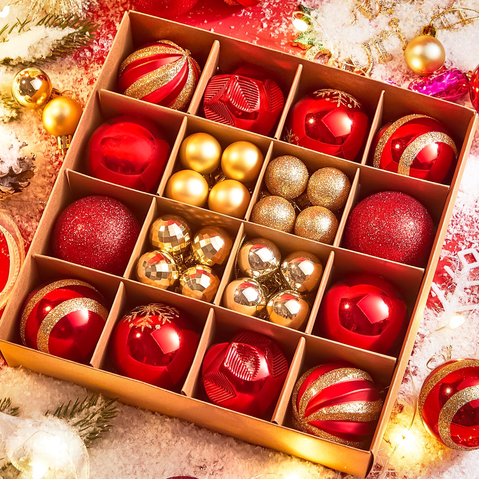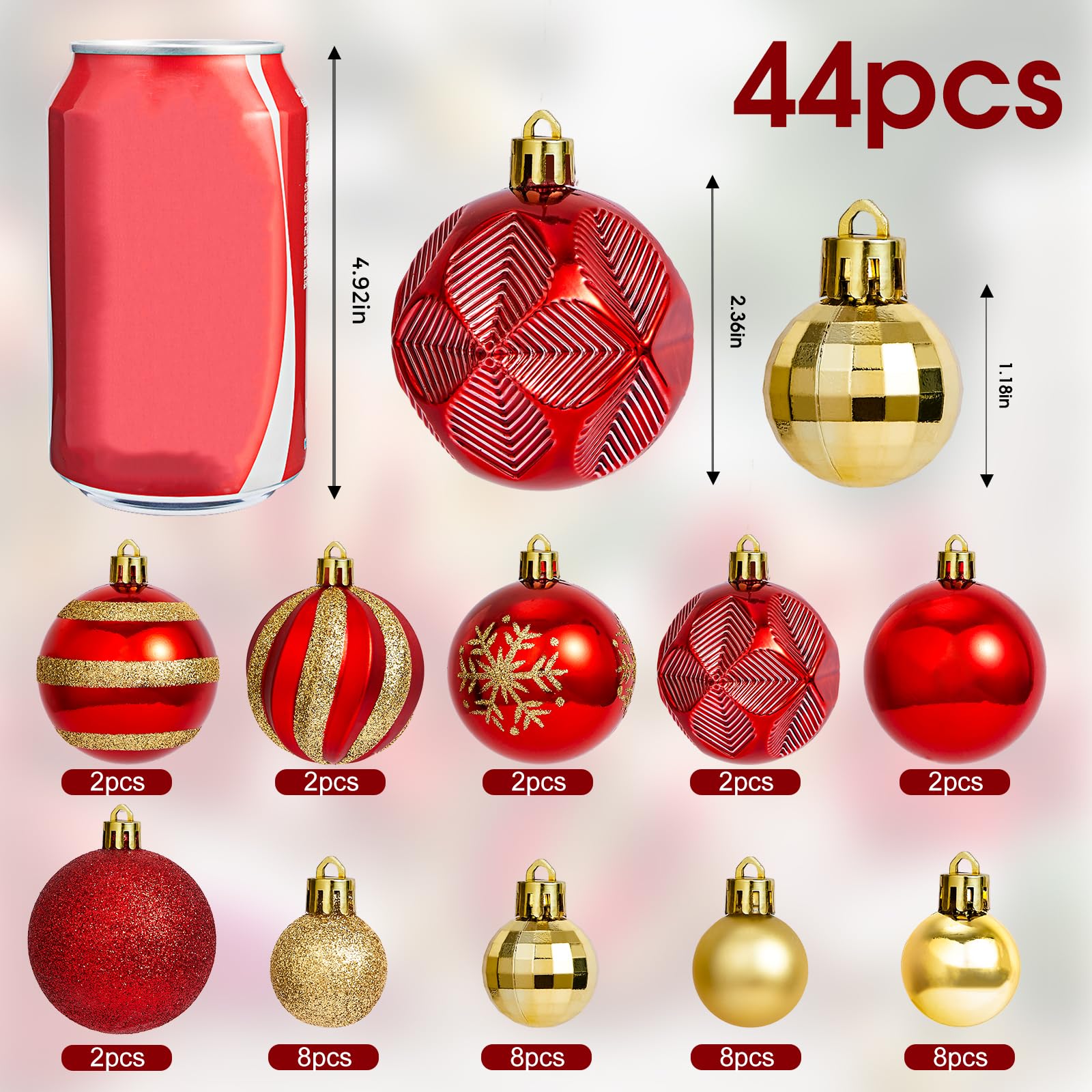 Red & Gold 44Pcs Christmas Balls Ornaments Set for Tree, Wreath & Garland - Shiny and Matte Holiday Decor