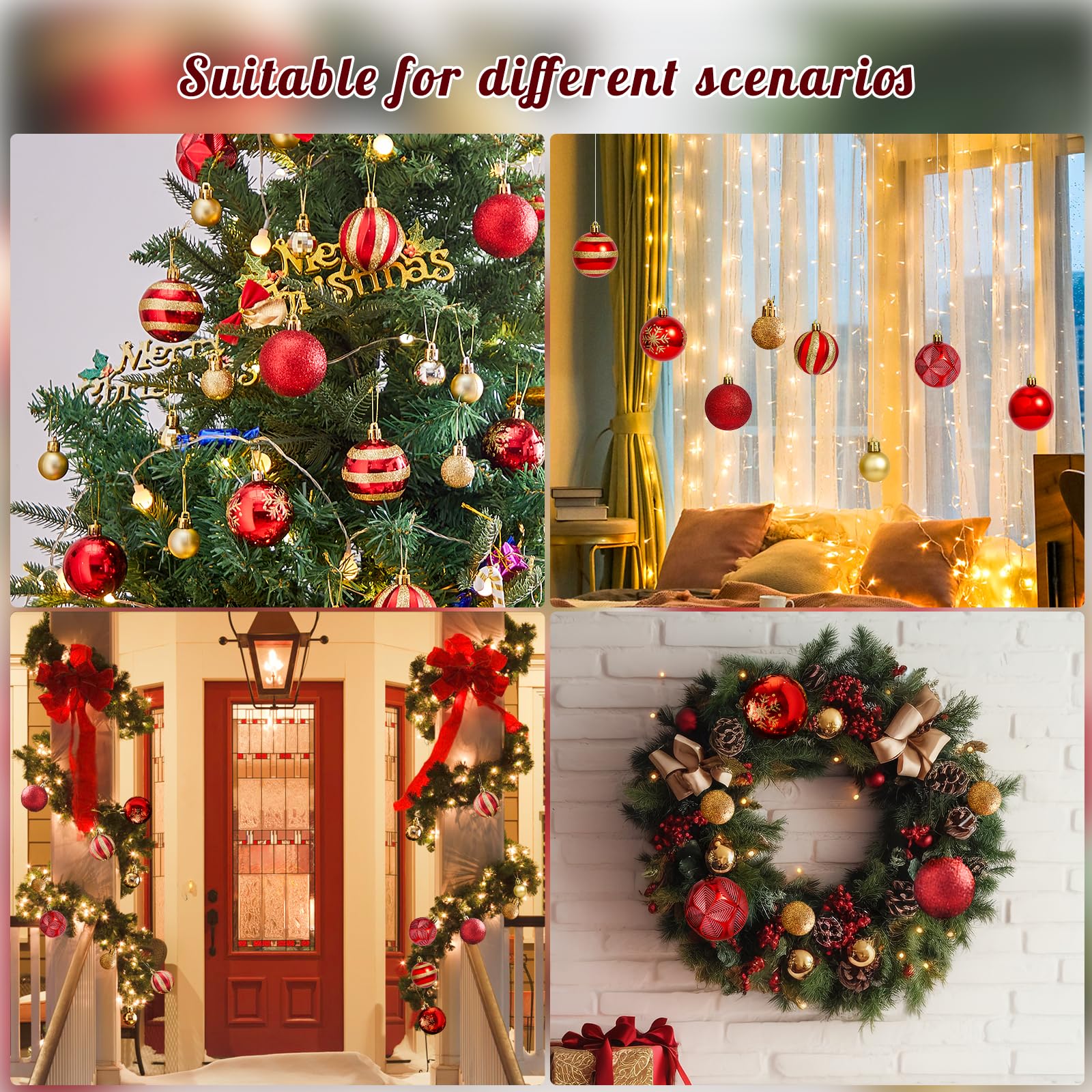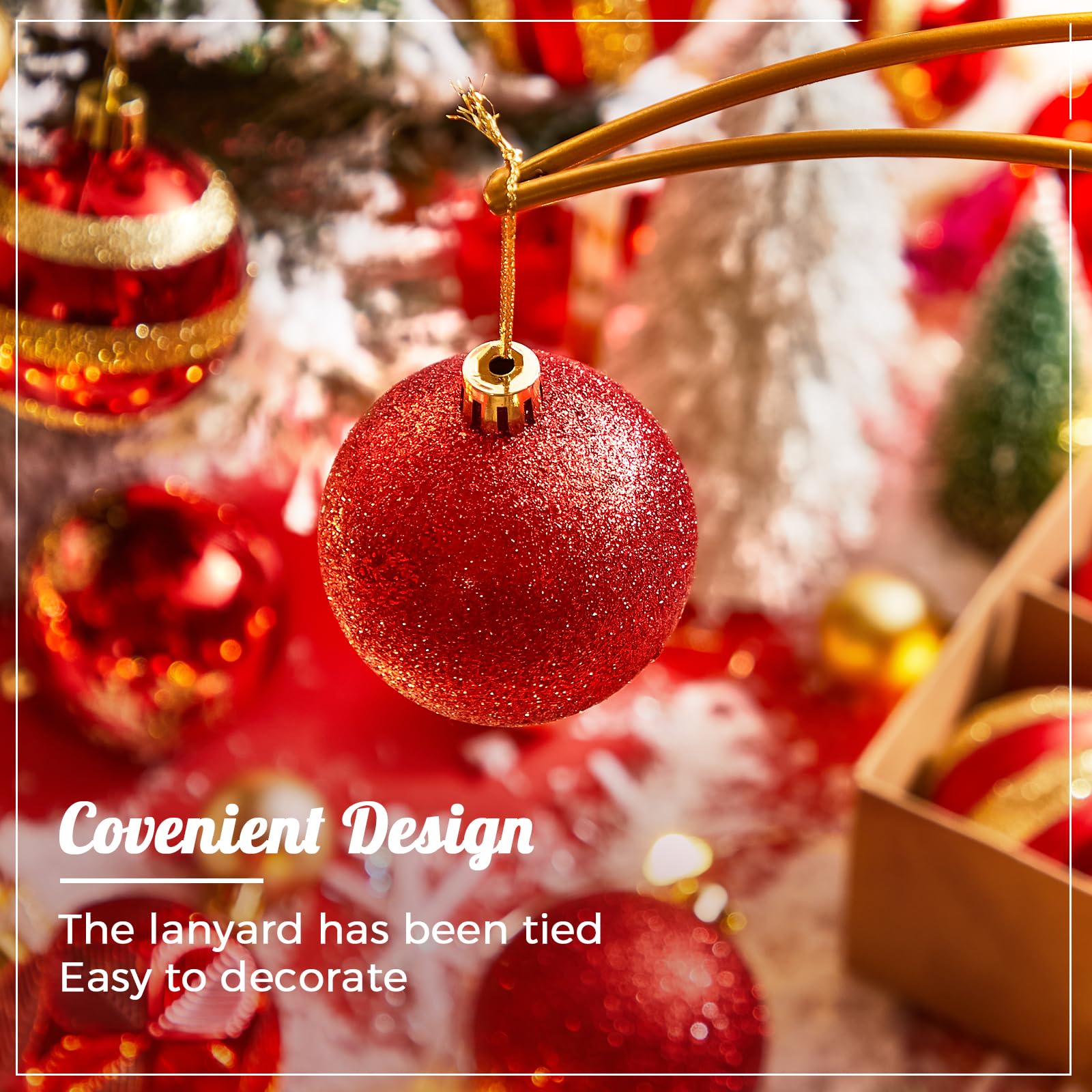 Add a festive flair to your holiday decor with our 44-piece Christmas Balls Ornaments Set in a striking combination of red and gold. This set features an assortment of shiny and matte balls, each uniquely designed to enhance your Christmas tree, wreath, or garland. The ornaments come in two sizes: the larger balls measure 2.36 inches, ideal for making a statement on your tree, while the smaller 1.18-inch balls are perfect for filling in gaps or adding to smaller displays.
