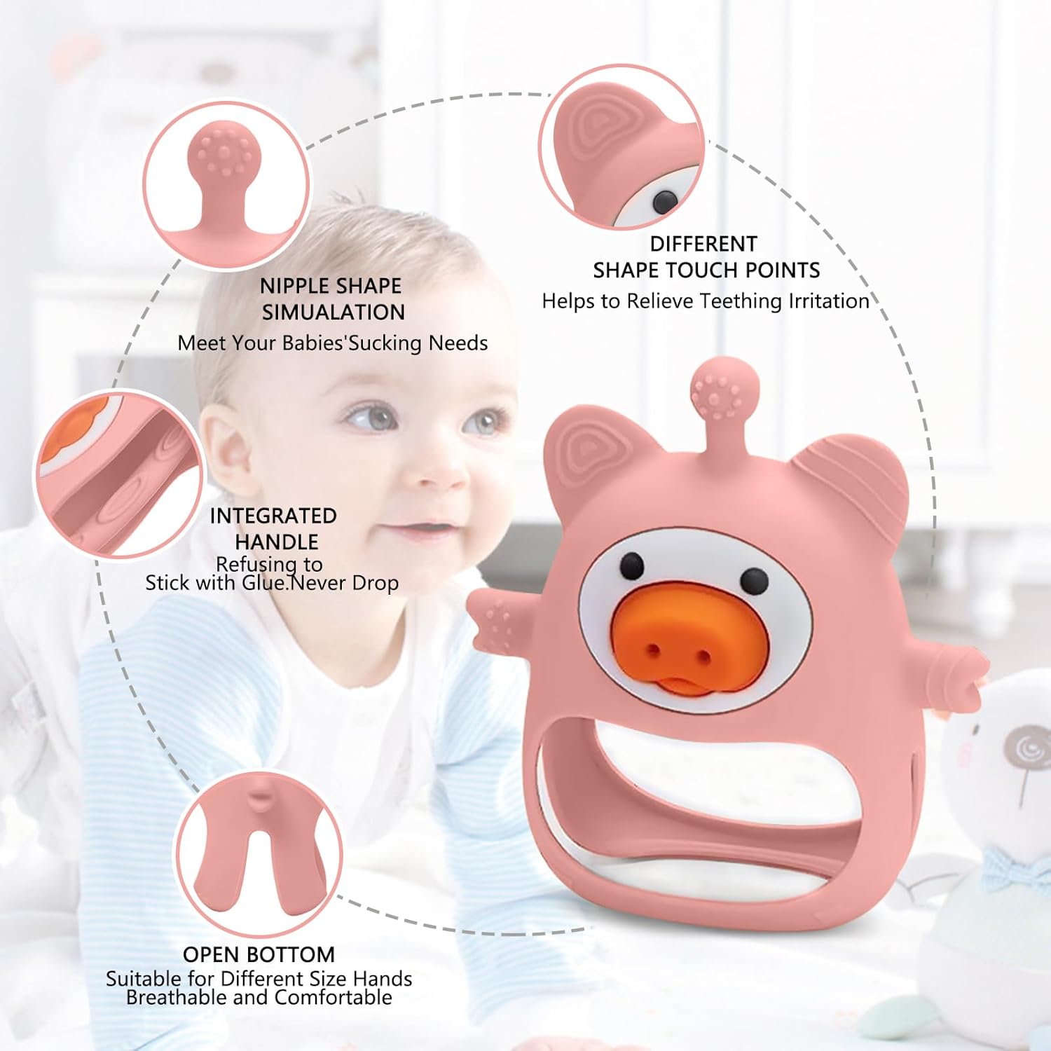 Soothe your baby’s teething discomfort with the adorable Pink Pig Baby Teether! This innovative teething toy for babies 0-6 months is designed to mimic breastfeeding, making it ideal for nursing infants. Crafted from food-grade, BPA-free silicone, it is soft enough to protect delicate gums yet firm enough to provide necessary teething pain relief.