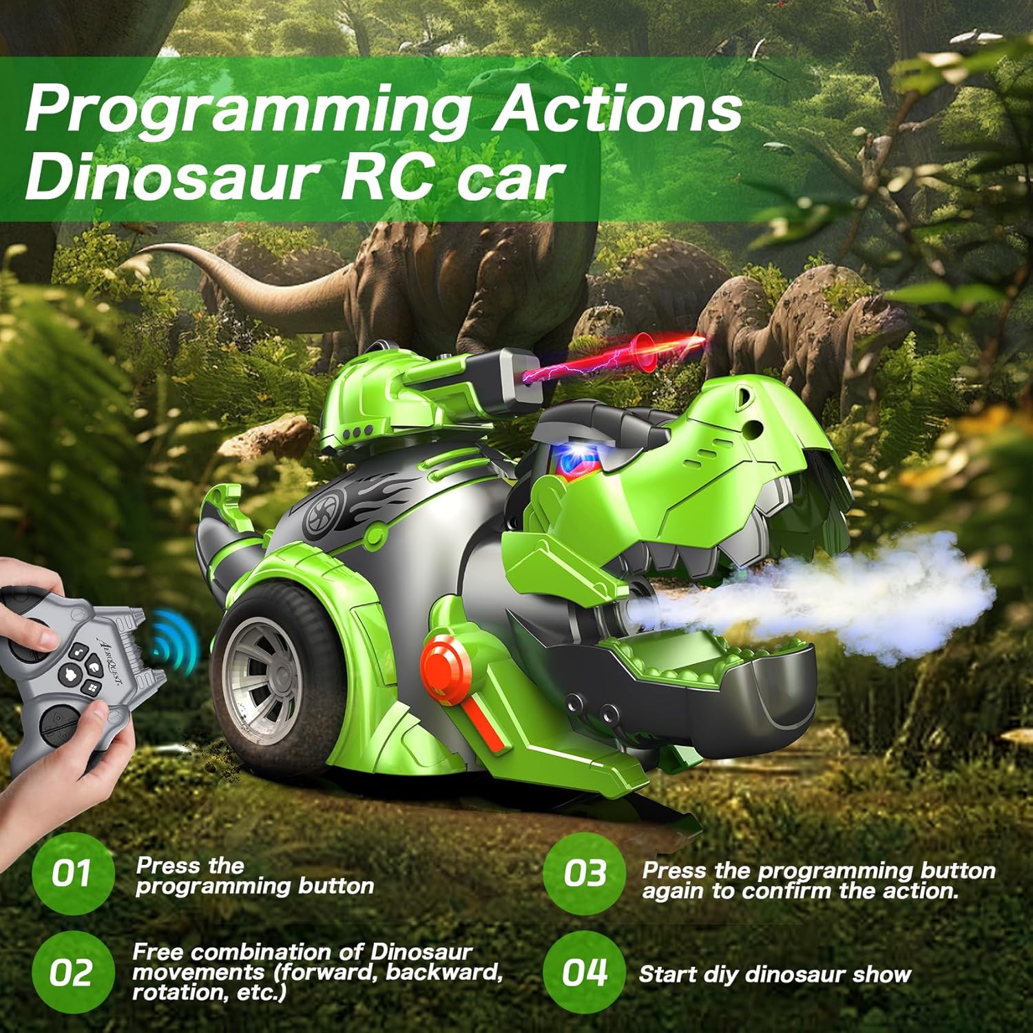 Green Dinosaur Remote Control Car with Programmable Actions & Rechargeable Battery for Kids
