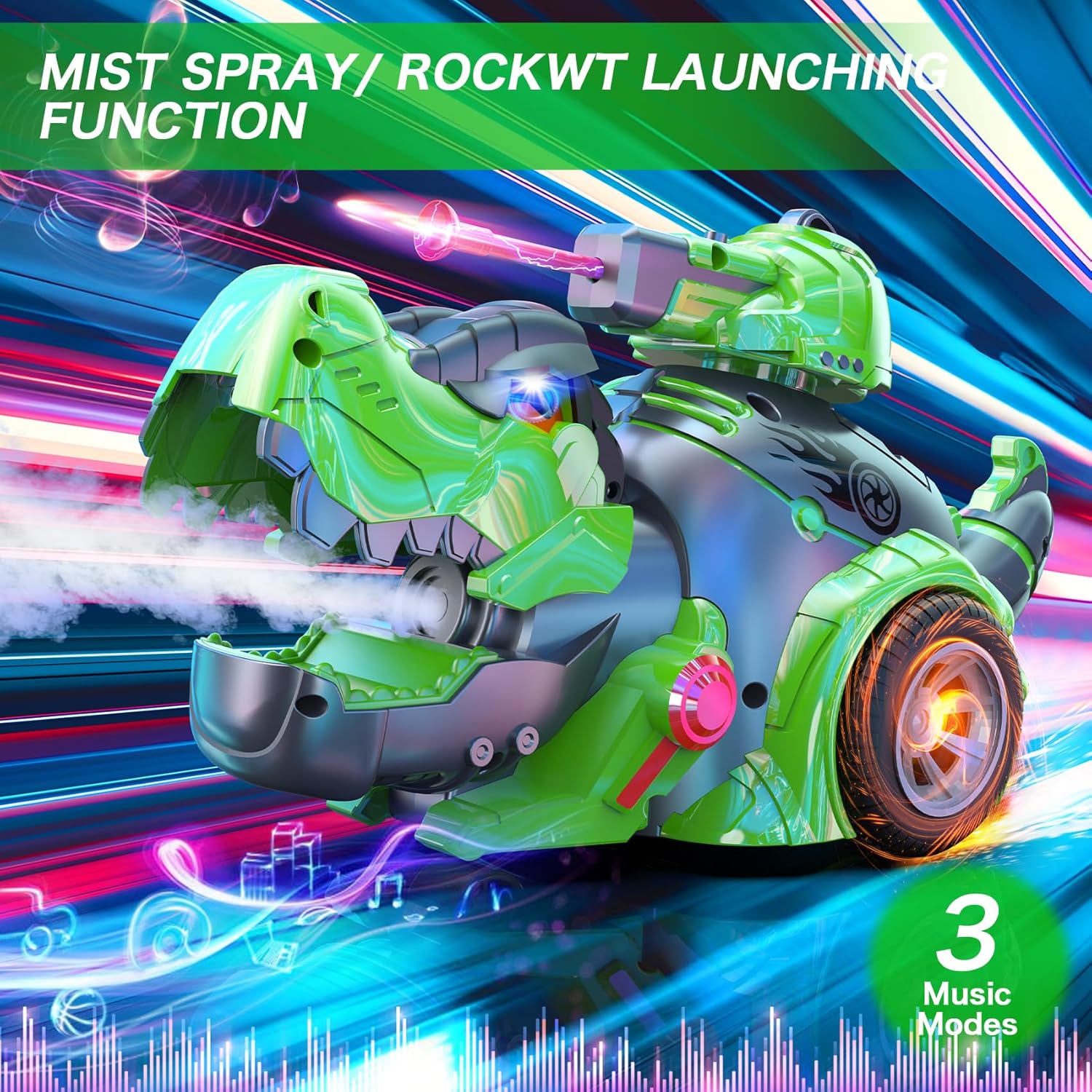 The Dinosaur RC Car is enhanced with light, sound, and spray effects that transform your child’s play area into a mystical dinosaur world. With three built-in music settings and red glowing lights accompanied by a misty spray, the experience is both enchanting and immersive.