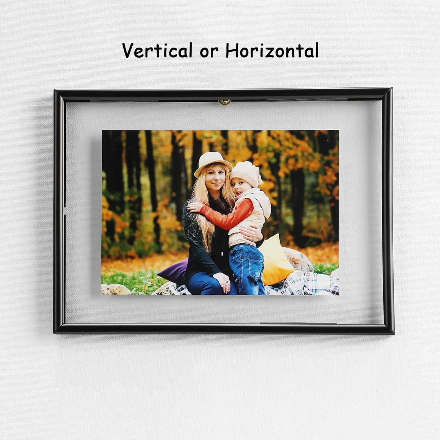 Discover the elegance and simplicity of our Black Floating Frame set, designed to showcase your most cherished memories in a style that complements any décor. This set includes two frames, each capable of displaying pictures of various sizes, including 4x6 inches, 3x5 inches, and 2x3 inches (10x15cm, 7.5x12.5cm, 5x7.5cm) with a tasteful gold metal frame encasing two pieces of transparent glass. The minimalist design ensures that the focus remains on your photo, presenting it in an elegant and beautiful manner.
