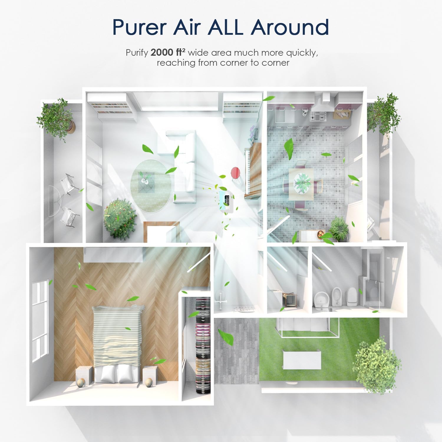 Experience the pinnacle of air purification with our advanced H13 True HEPA Air Purifiers, specifically designed for large rooms up to 2000 square feet (about 186 square meters). This cutting-edge device captures 99.97% of airborne contaminants, including pet dander, smoke, and pollen, ensuring that your living space remains fresh and clean. Its high-efficiency filtration system is perfect for swiftly removing a wide array of pollutants, providing relief from unpleasant odors and enhancing your indoor air quality.