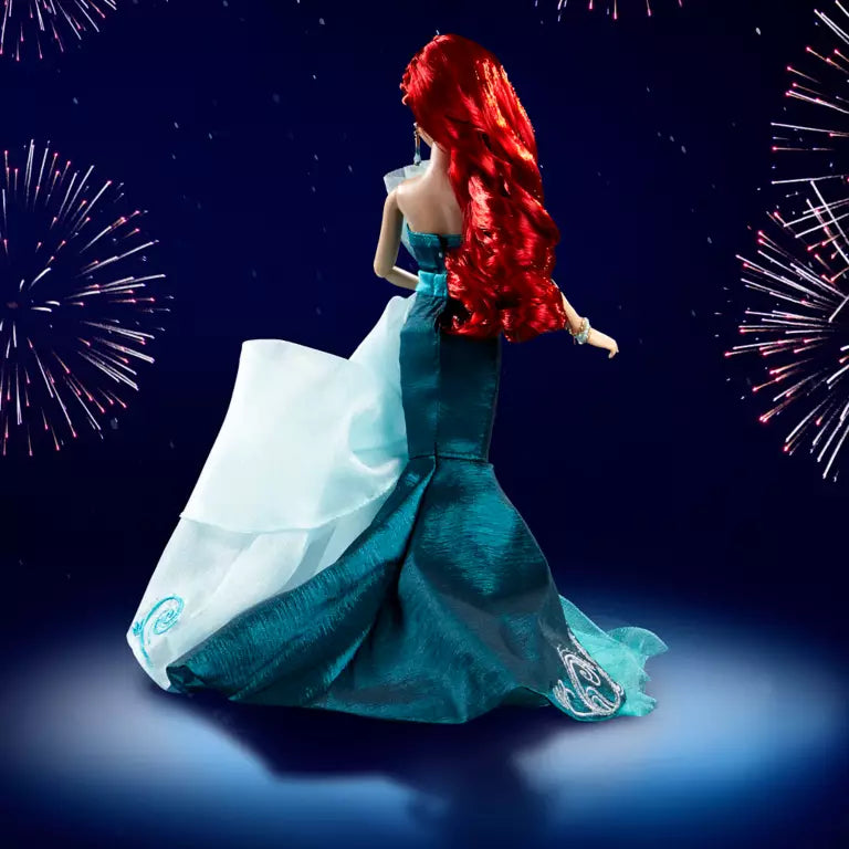 Included with the doll is a Certificate of Authenticity, affirming its status as a collectible from a limited edition of just 4,300 pieces. Ariel comes housed in an elegant window display package adorned with ribbon ties and a carry handle, perfect for collectors displaying or storing this treasured figure.