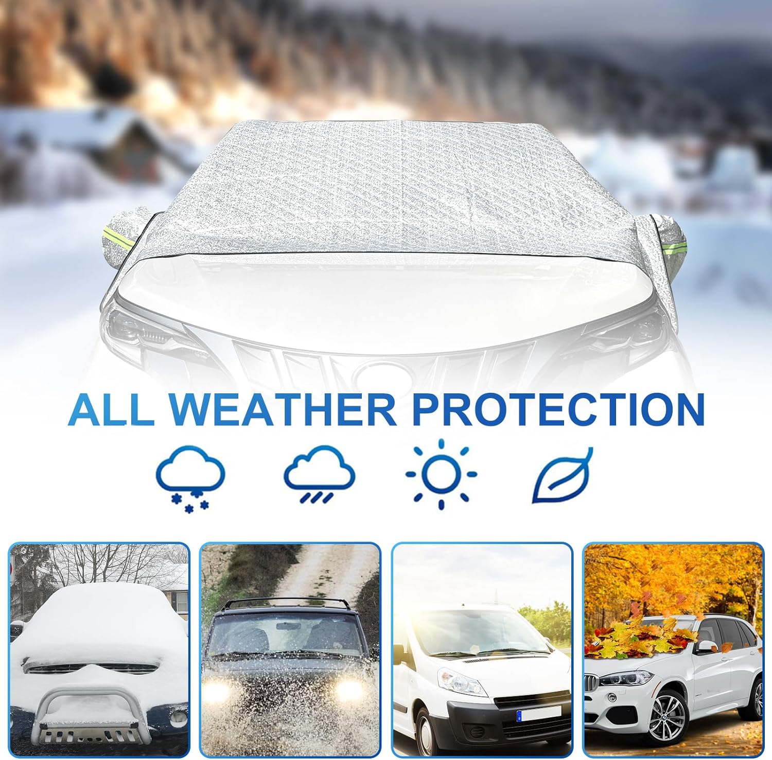 Defend Against Winter: 4-Layer Magnetic Windshield Snow Cover for Cars, Trucks & SUVs | Easy Install, 96x58 inches