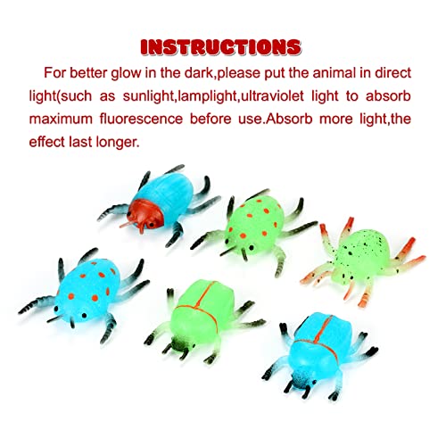 - GlOW IN DARK.These mini bugs bulks would glow fluorescent green in dark, super eye-catching to boys and girls.For better glow in the dark, please put the insect in direct light(such as sunlight, lamplight and ultraviolet light) to absorb maximum fluorescence before use. Absorb more light, the effect last longer.