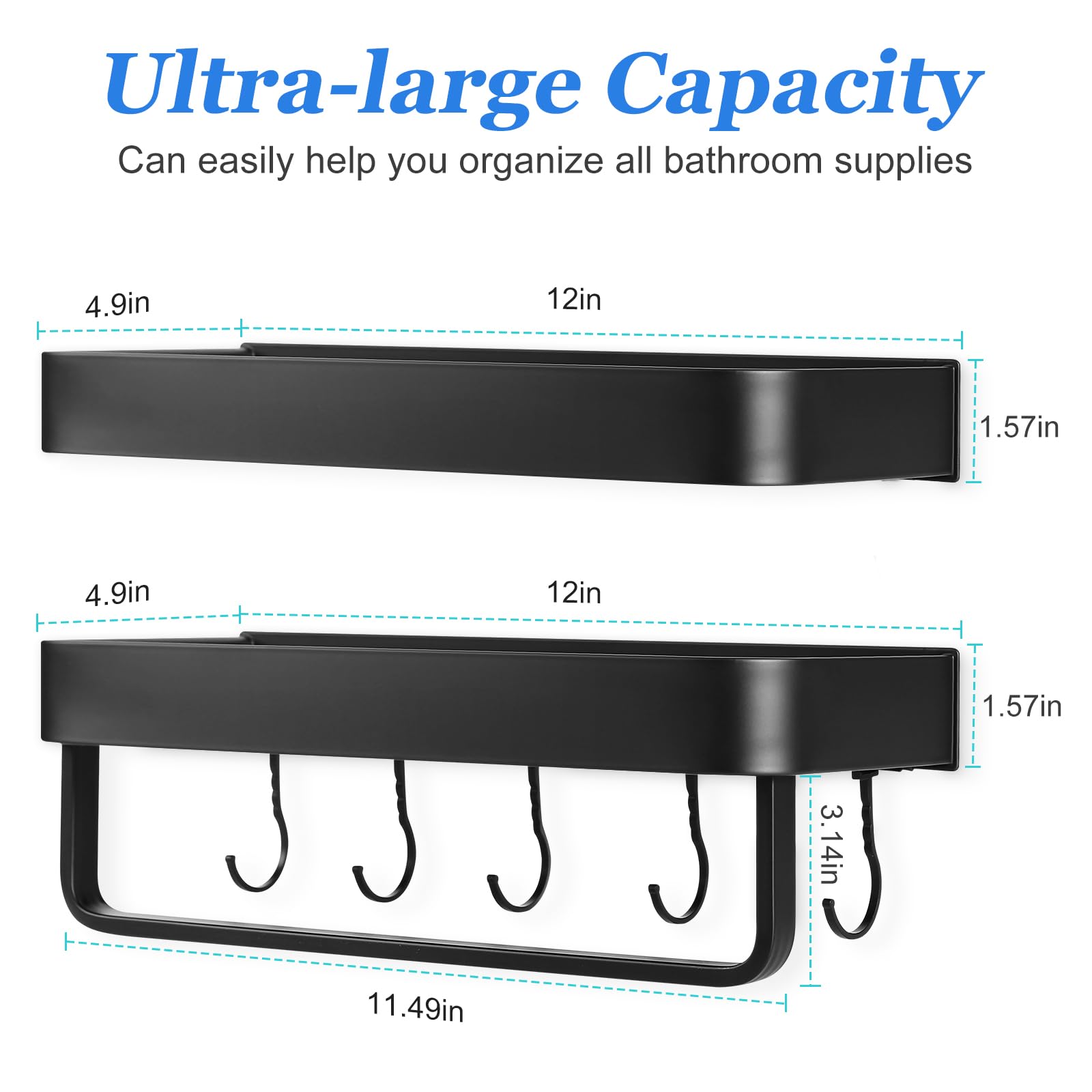 This 2-Piece Shower Caddy is not just a storage solution; it's a transformation for your bathroom and kitchen spaces. Crafted with an ultra-large capacity, the caddy features a widened tabletop, perfect for placing your heavy shampoo bottles, soap dishes, and various other bathroom essentials. It boasts 5 movable hooks and a hanging rod, so whether it's your razor holder or towels, every item finds a neat spot.