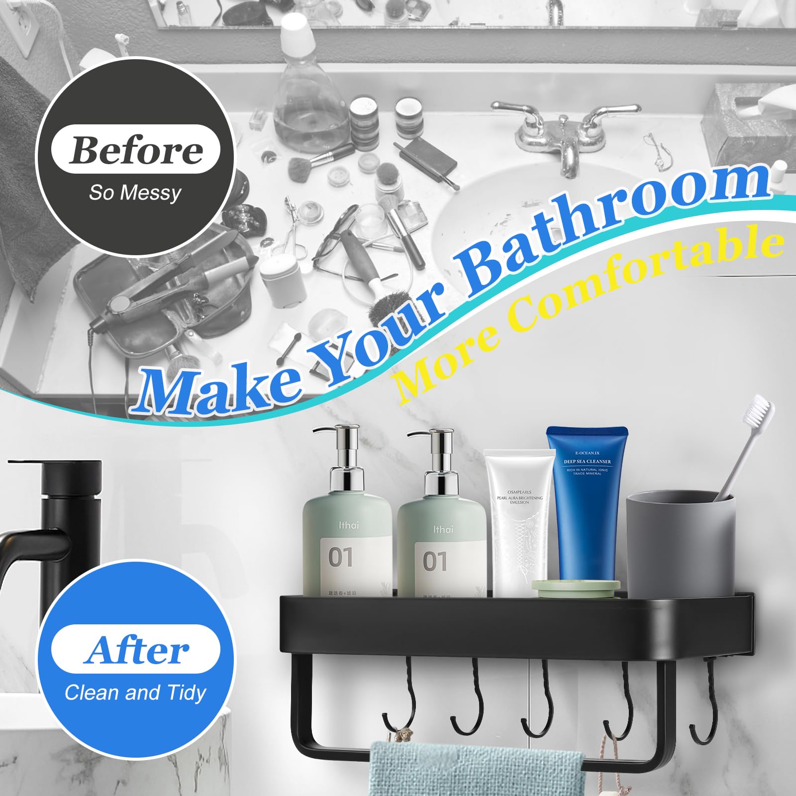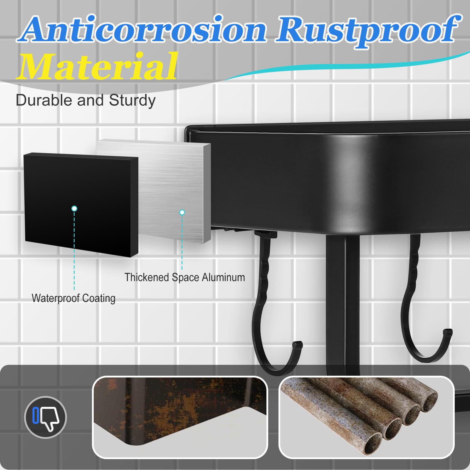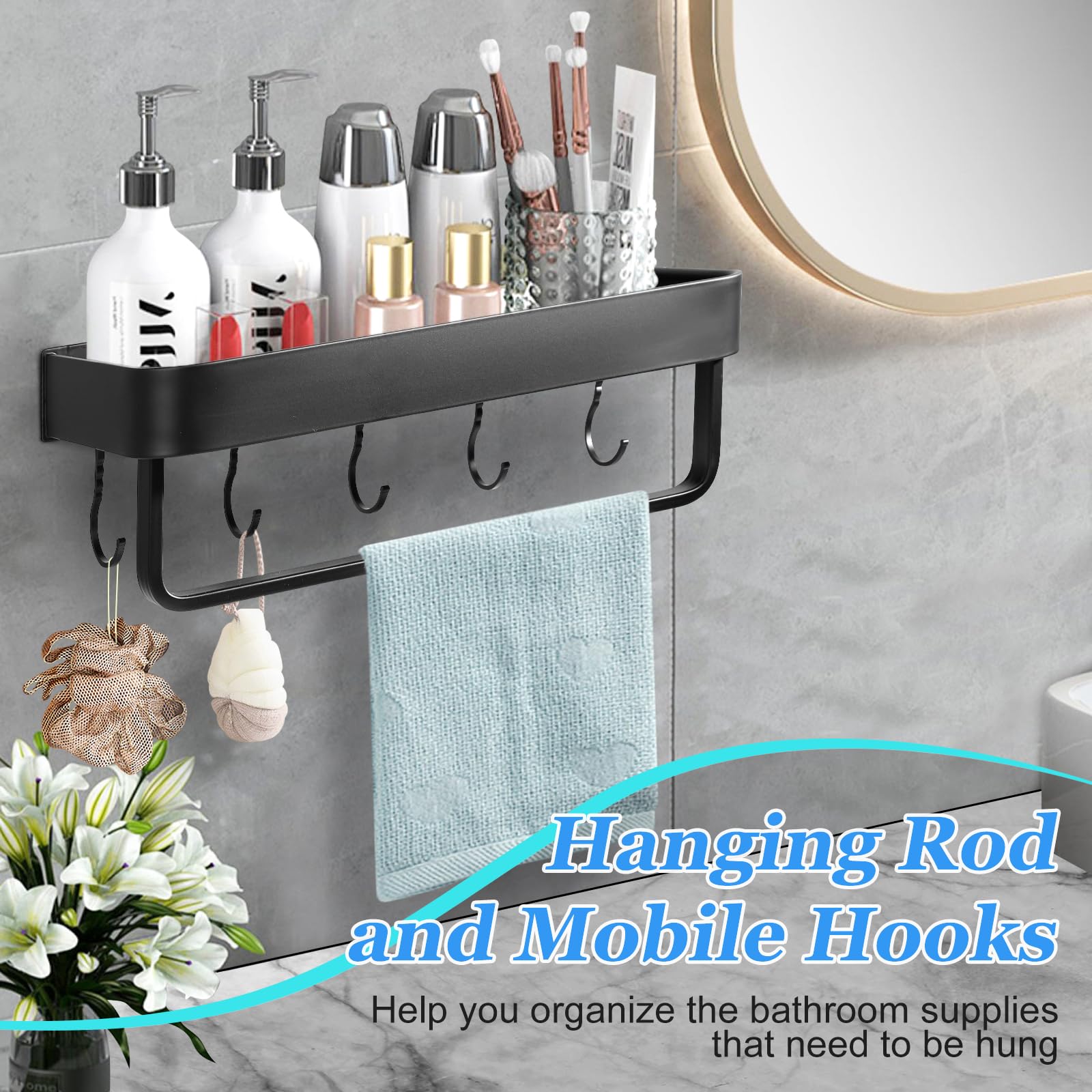 Each purchase includes 2 shower caddies, 5 hanging bars, a hanging rod, essential installation accessories, and a comprehensive installation manual. Whether it's your bathroom, kitchen, or balcony, let organization and elegance reign supreme.