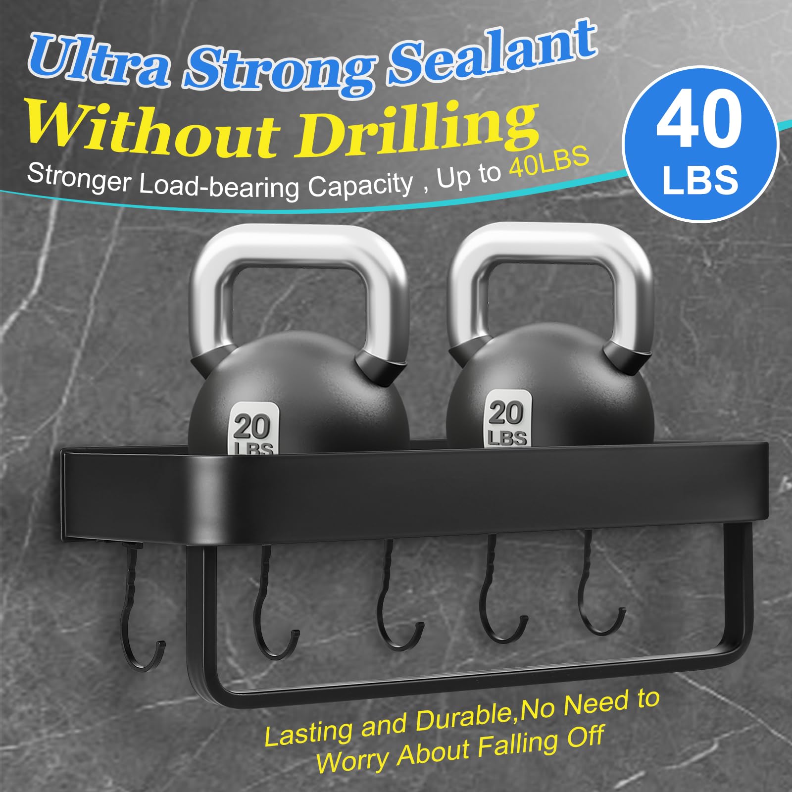 Sturdiness is one of its hallmarks. It employs a strong sealant for firm fixation, making it compatible with a plethora of wall types, be it glass, porcelain, marble, or solid wood. Each caddy can comfortably hold up to 40 pounds, so pile on those shower essentials without a second thought. The installation? A breeze! In just three simple steps, without the need for tools or drilling, your organizer will be up and ready. Just apply the sealant, position, and press!