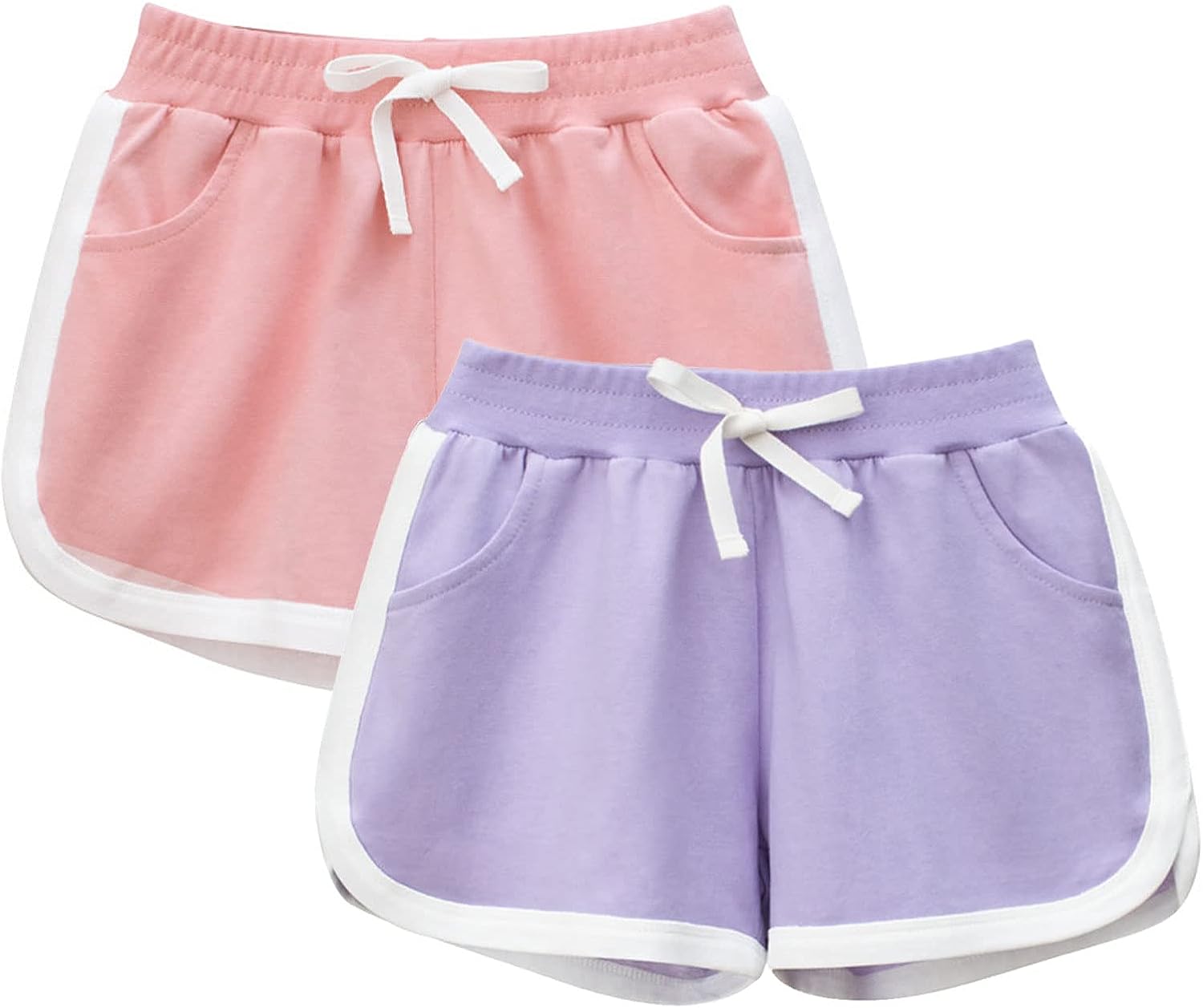 2pk (Pink/Purple) Size 4Y-5Y Cotton Athletic Shorts w/ Decorative Drawstring