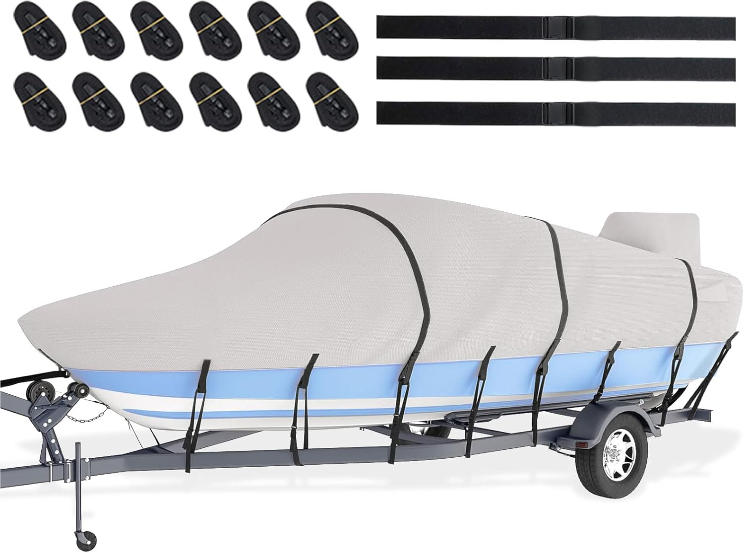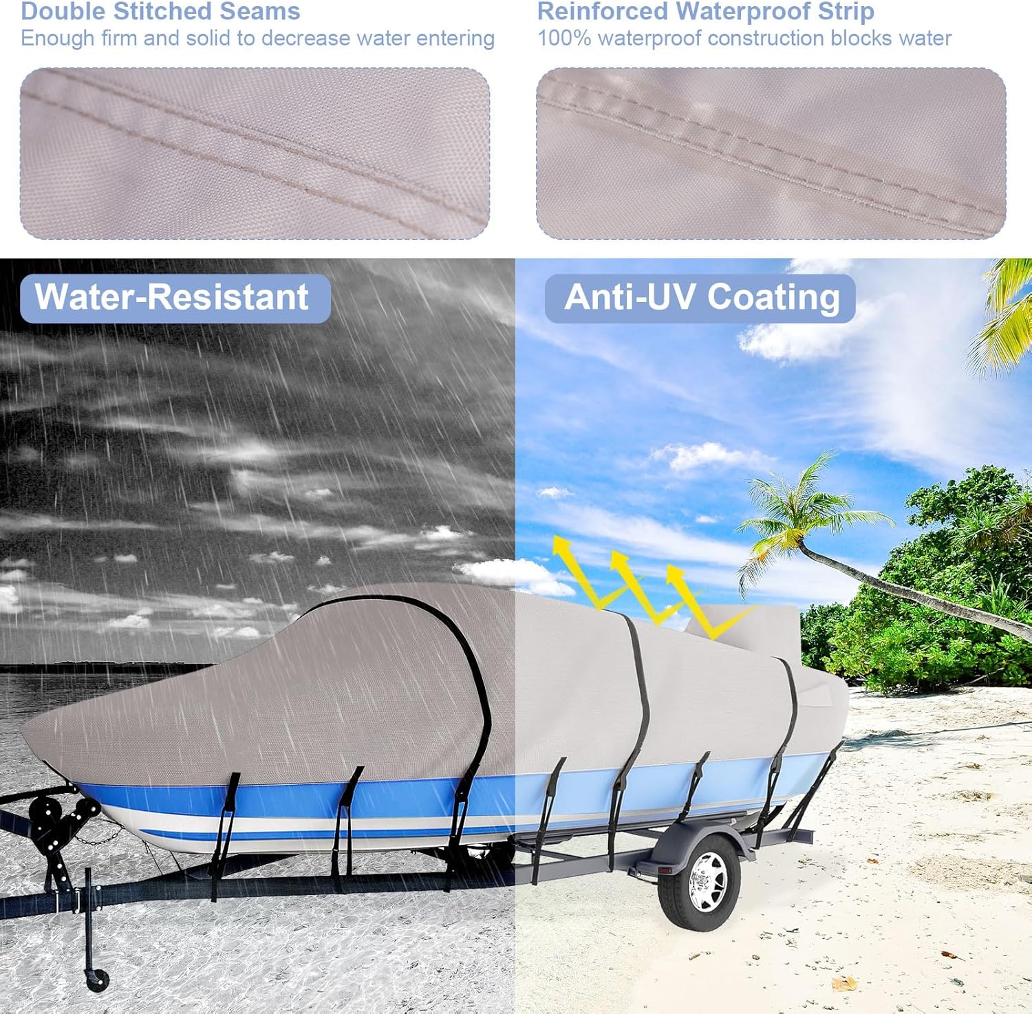 Waterproof 17'-19' Boat Cover, 800D UV-Resistant Marine Fabric for Bass, Tri-Hull, V-Hull Boats